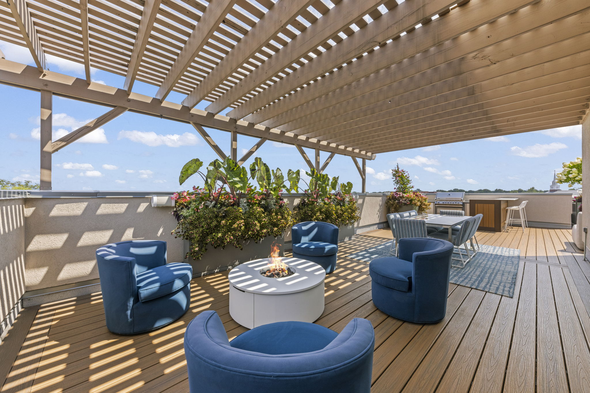 Located in the heart of town, this 3 bedroom, 2.2 bath luxury condominium has been breath-takingly rehabbed throughout in 2023. The 1500 square foot, private rooftop is truly the crowning amenity that is not duplicated elsewhere. Much like the interior spaces, the maintenance-free deck has an unobstructed view of the Chicago skyline and a bird's eye view of the charming Village of Glen Ellyn. It's a wonderful spot to watch the sun rise or set, to privately sunbathe, host a party for 60 or enjoy firework shows from downtown Chicago to Naperville. The stainless outdoor grilling area is great for preparing lunch or dinner and does double duty as a bar and serving area while entertaining. Show off your green thumb with the many custom planters or as the current owners, hire the landscaper of your choice to seasonally plant. This garden is also a favorite spot to watch hummingbirds! In addition are the extremely rare, three indoor heated parking spaces with EV chargers.