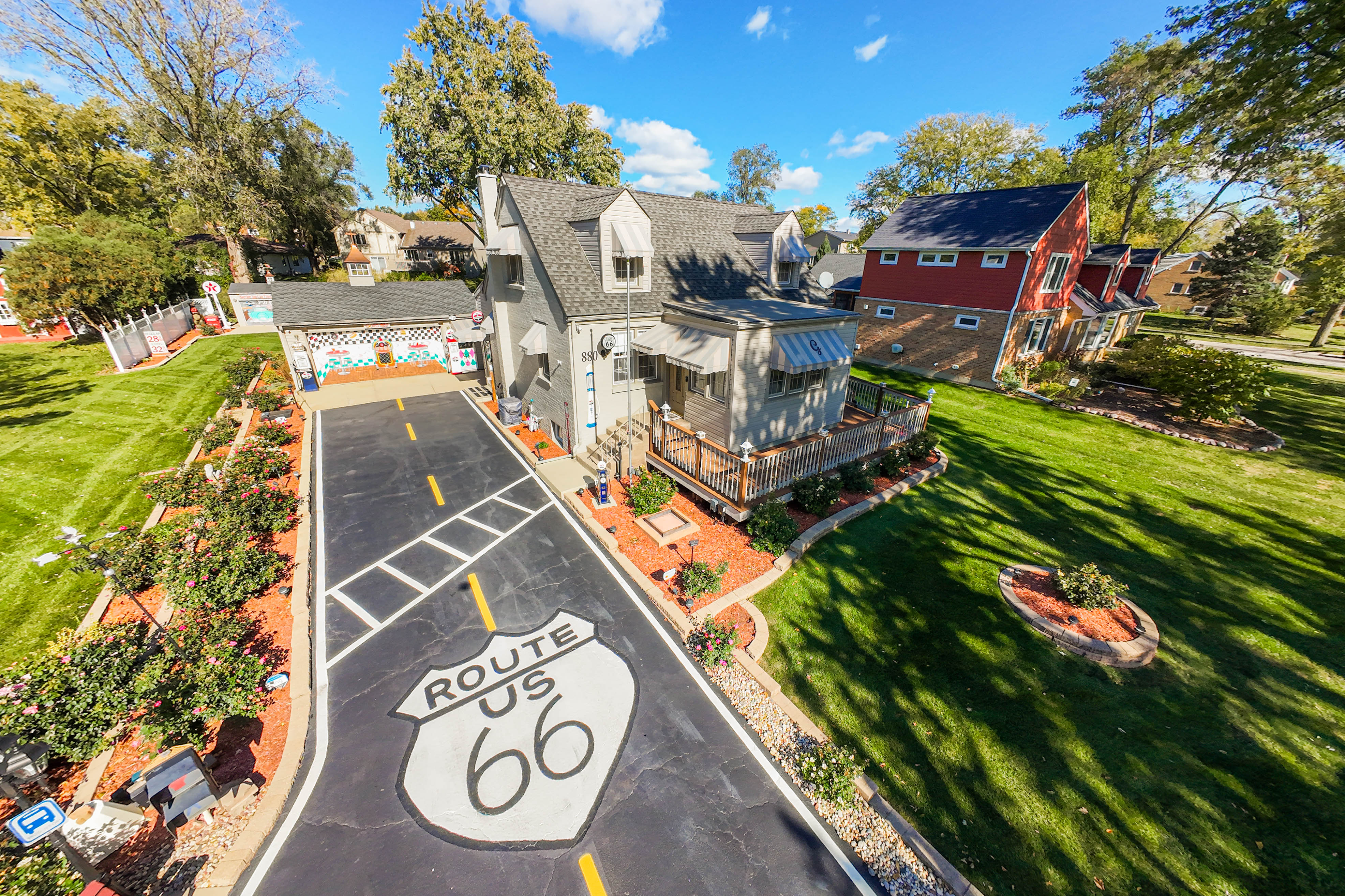 A retired highway superintendent for DuPage County, Jim Galto painted the driveway to look like a two-lane stretch of Route 66. The fabled highway, which began at Michigan Avenue and Adams Street, "winds its way from Chicago to L.A., 2,000 miles all the way," according to the 1946 song about the road that is celebrating its centennial in 2026.