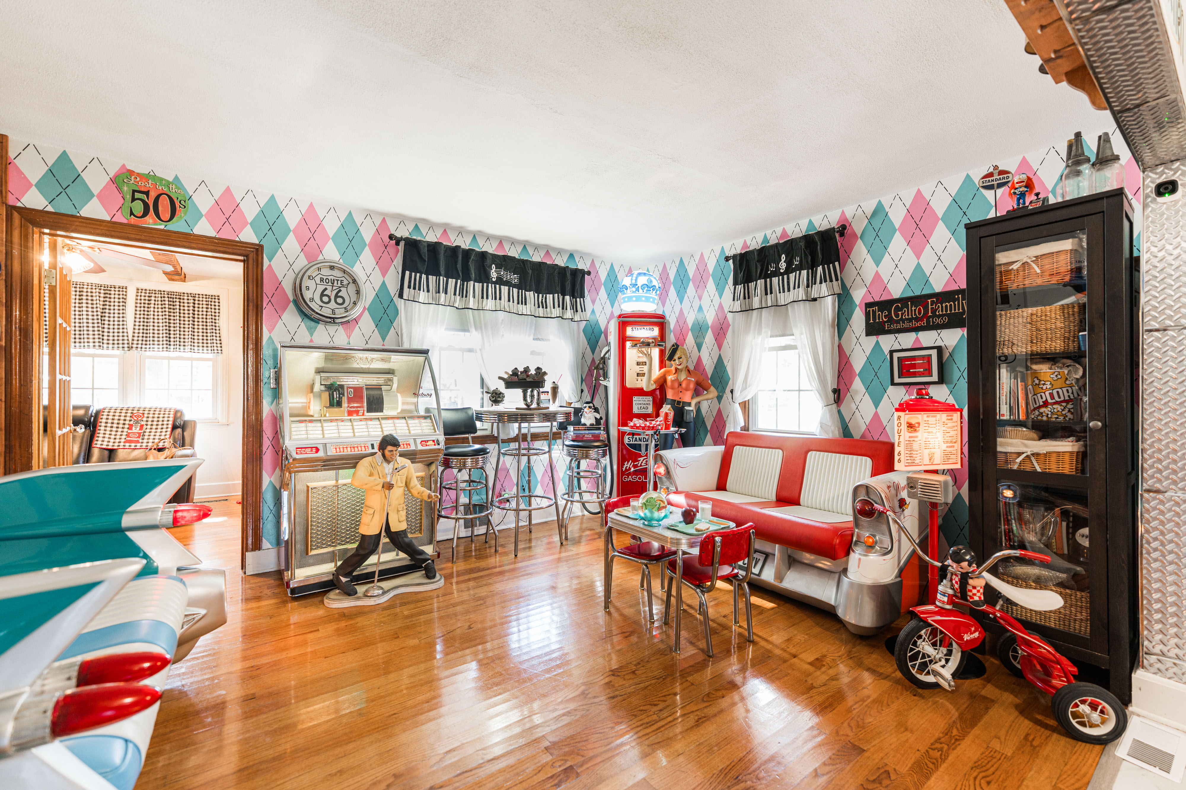 "People ask if we really live with all this or if it's just our museum," Laura Galto said, referring to the checkerboard tile on the walls, couches that look like the tail ends of 1950s cars and all manner of vintage signs.