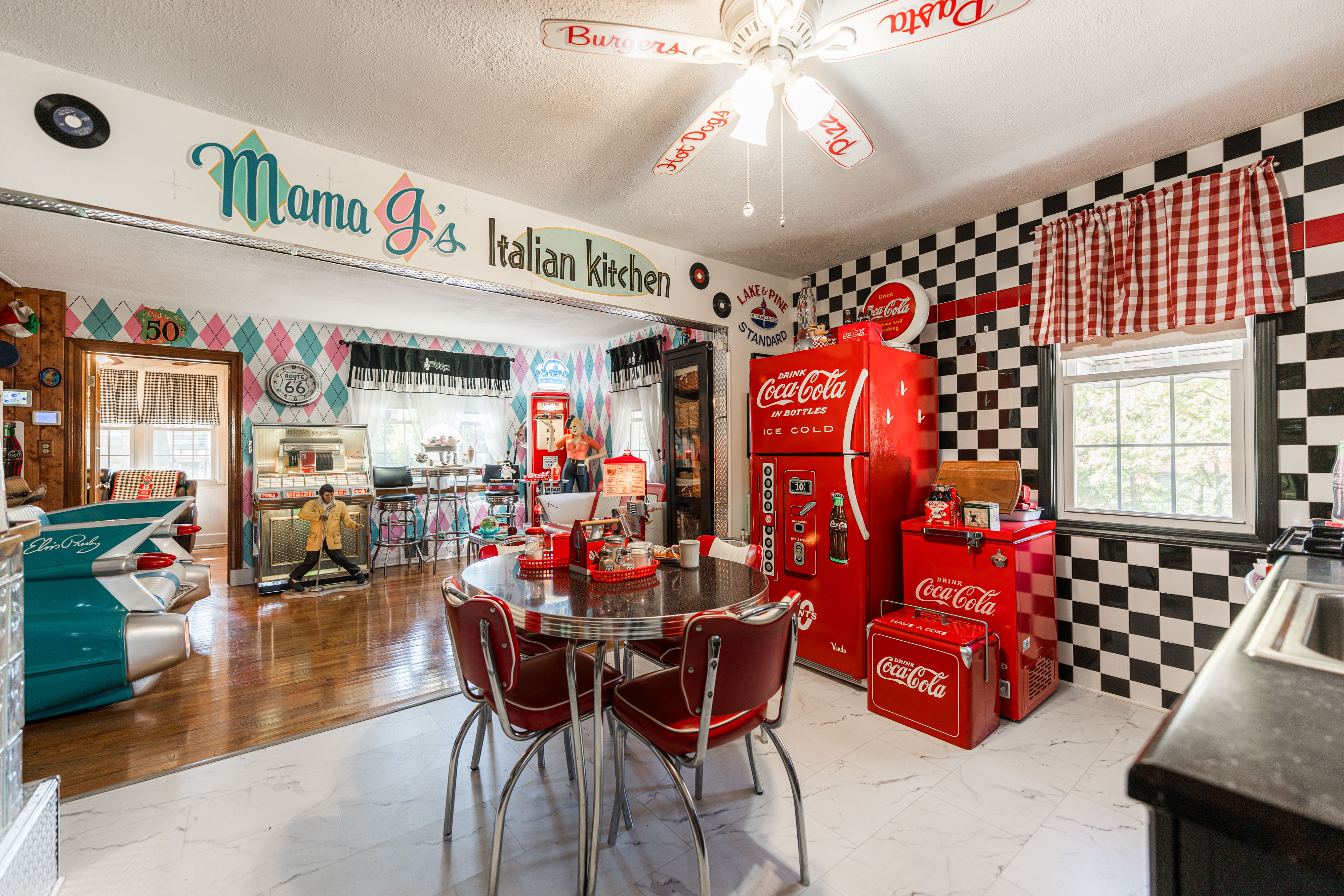On some walls not seen in these photos, the couple painted complete diner menus, with items named first for their kids and later for their grandkids.